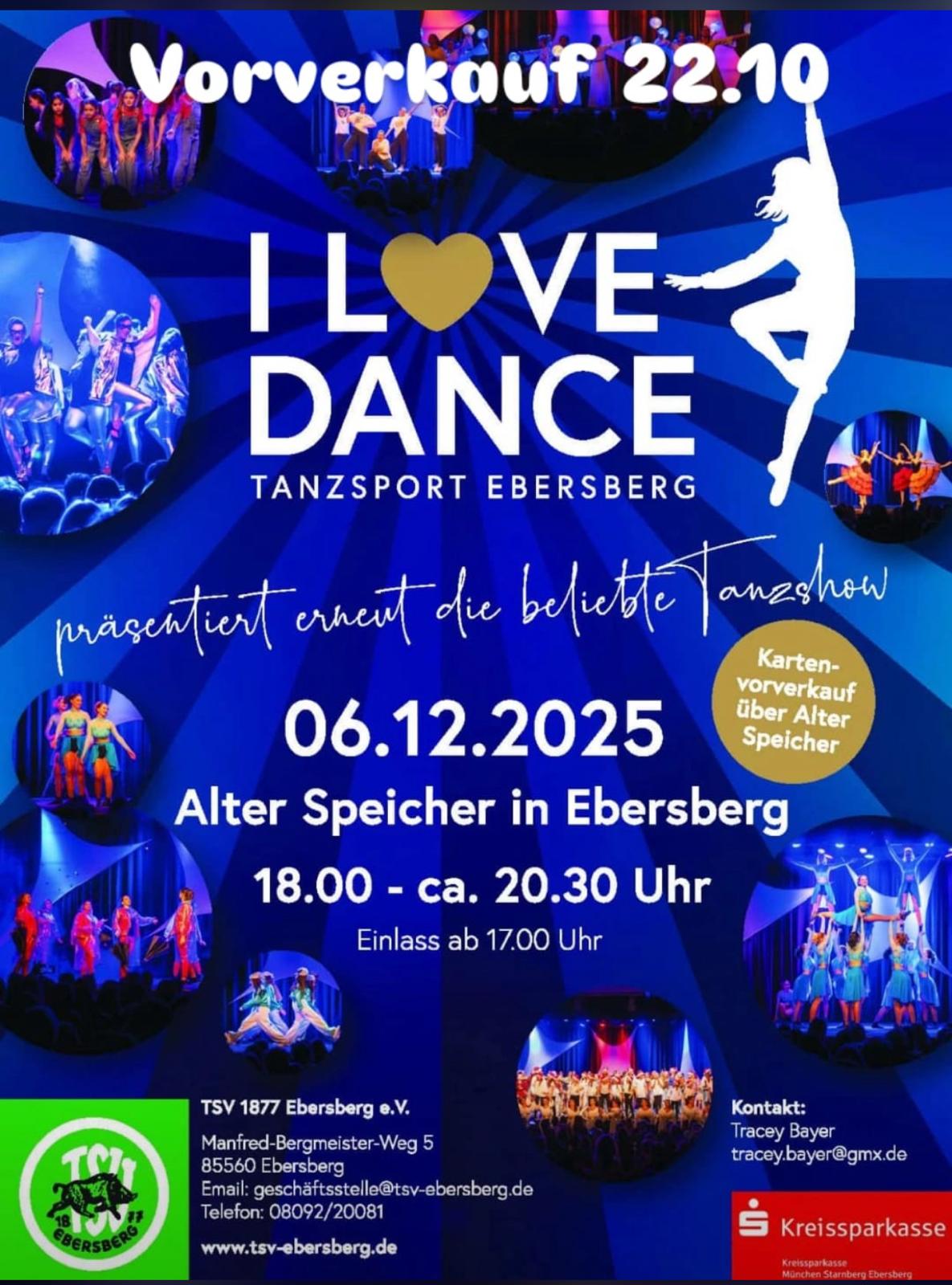 Es wird wieder ein Genuss für alle Freunde des Tanzsports und auch für unsere Juniorengruppe auf der Bühne. Die Tanzshow TSV Ebersberg findet am 26. März 2022 ab 18:00 Uhr im Alten Speicher statt.